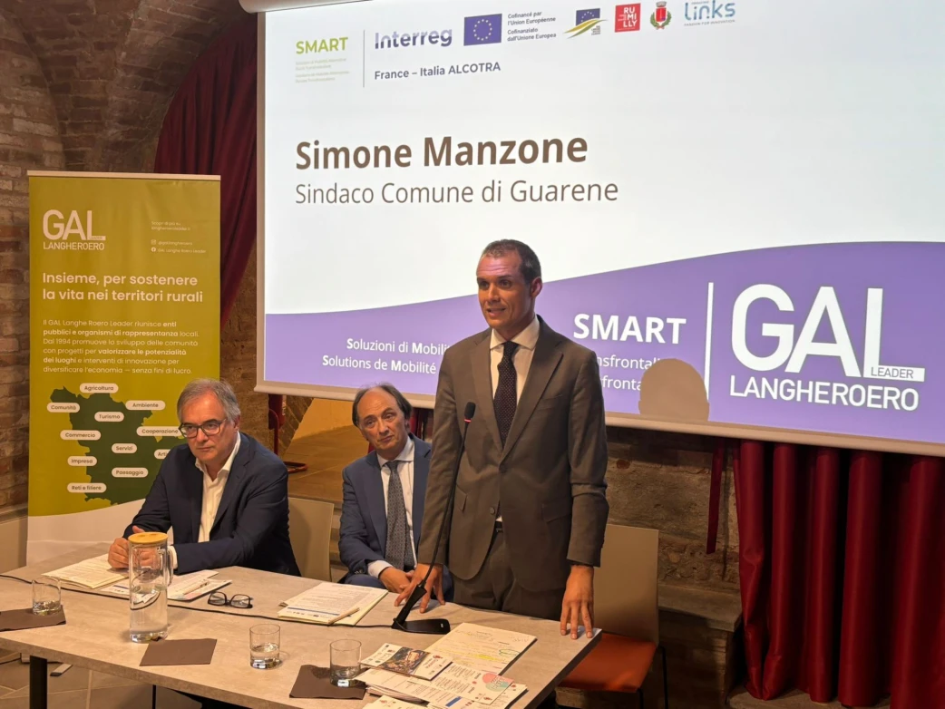 Une étape décisive qui ouvre désormais une nouvelle phase : celle de la mise en œuvre. SMART s’apprête en effet à traduire en actions concrètes un important travail de co-conception, mené par un partenariat transfrontalier italo-français. Pour l’Italie, participent : la commune de Guarene – porte-parole également des communes d’Alba, Castagnito, Corneliano d’Alba, Magliano Alfieri, Piobesi d’Alba et Vezza d’Alba – ainsi que la Fondation LINKS. Côté français, le principal partenaire est la Communauté de Communes Rumilly Terre de Savoie (CCRTS), avec le soutien technique de l’Agence Écomobilité Savoie Mont-Blanc.
