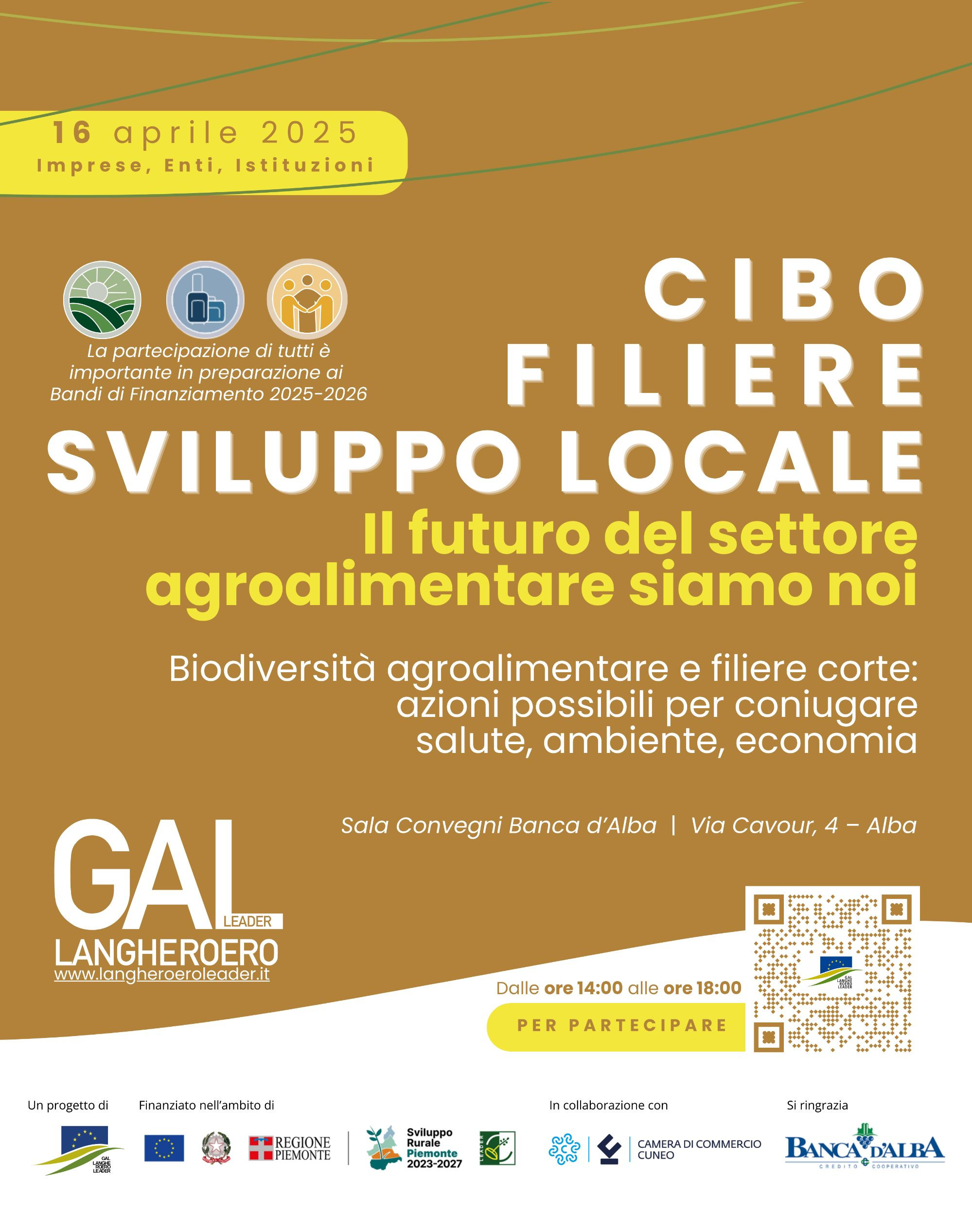 Alleanze e narrazione per un'identità territoriale condivisa. Con questo ultimo appuntamento si conclude il percorso “Cibo, Filiere, Sviluppo Locale” promosso dal GAL Langhe Roero Leader. Scarica i materiali!